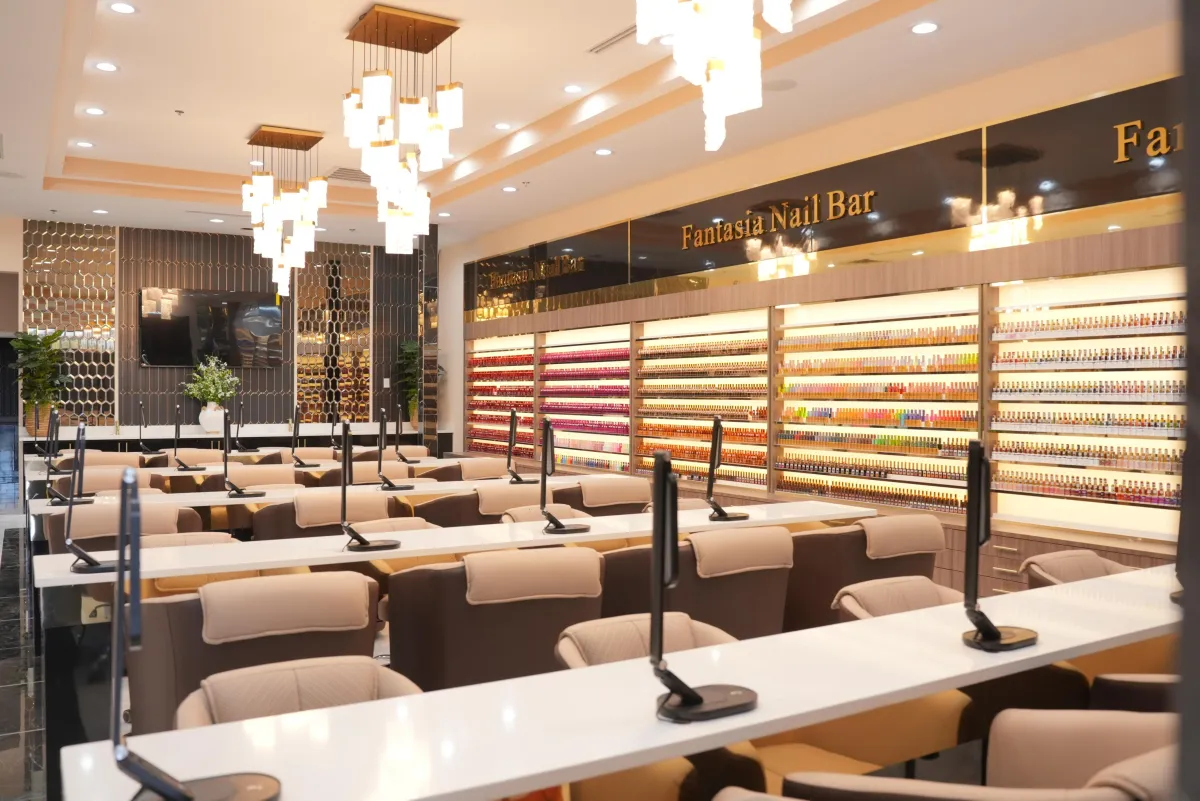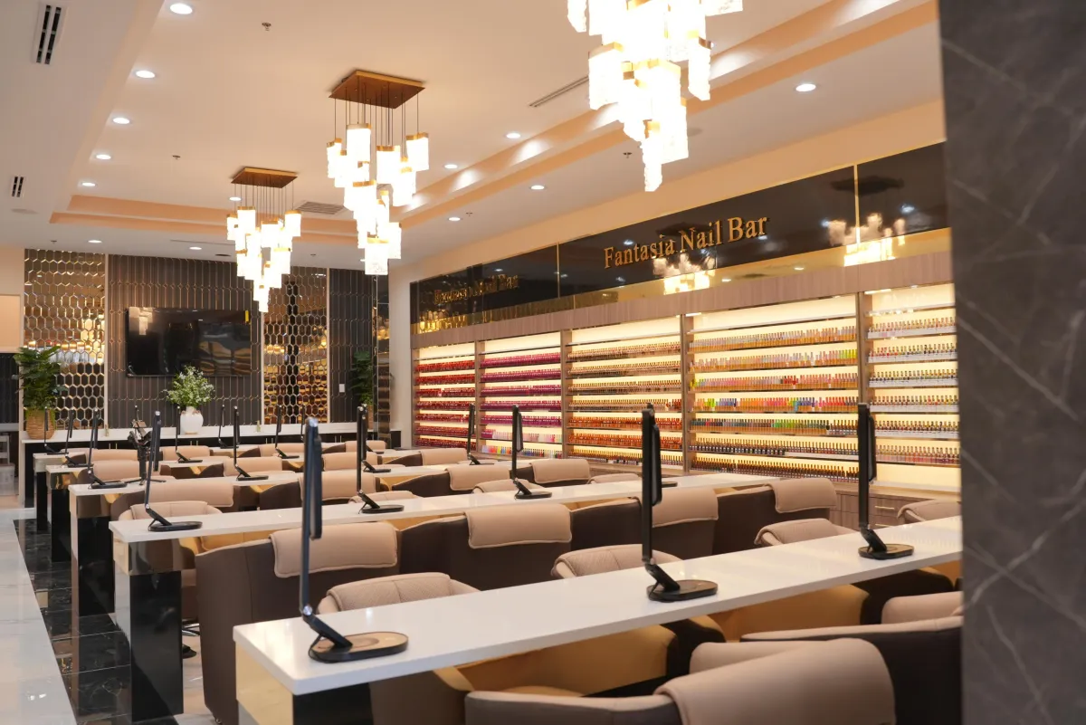 Relax with a complimentary drink while enjoying our state-of-the-art spa, featuring over 60 premium chairs—perfect for individuals or group bookings. Choose from thousands of colors by top brands like OPI and ESSIE.